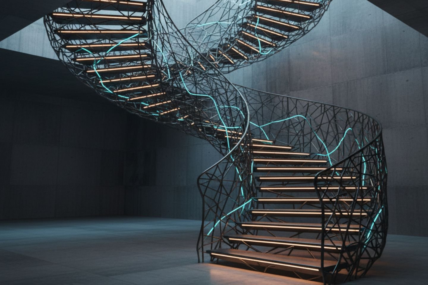 Designer Mild Steel Staircase with Integrated LED Lighting – Modern Architectural Feature